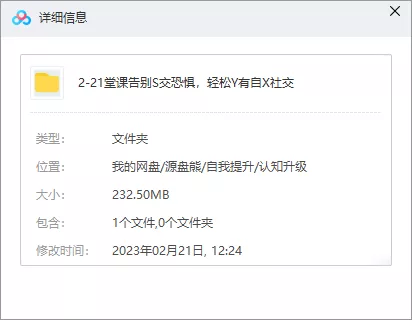 资源名称:21堂课告别社交恐惧,轻松拥有自信社交