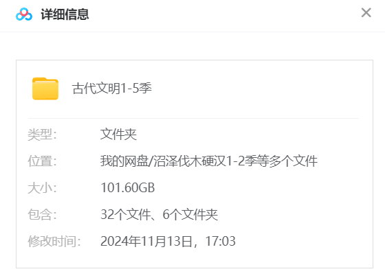《古代文明 Ancient Civilizations》第1-5季全49集(详见列表),全部为官方纯净1080P英语发音,内置中英文AI双语字幕,文件总大小约101G,下载地址分为百度网盘(加密分卷压缩)。
